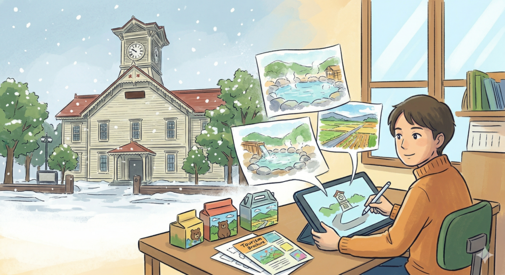 観光・宿泊業 在宅でのアート制作(観光パンフレット・お土産パッケージ用イラスト)