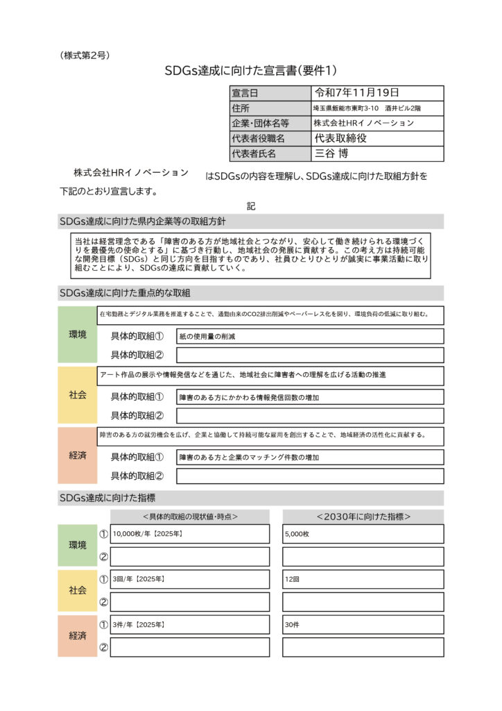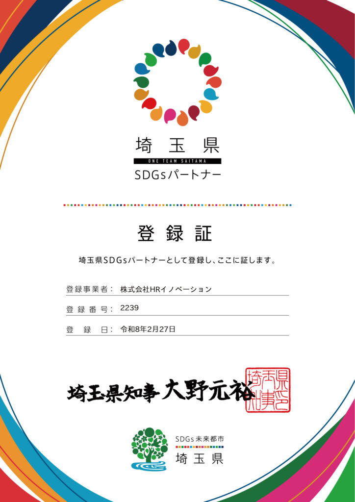 この度、株式会社HRイノベーション(在宅障害者雇用サポート「いろは」)は、埼玉県が推進する「埼玉県SDGsパートナー」に登録されましたことをお知らせいたします。